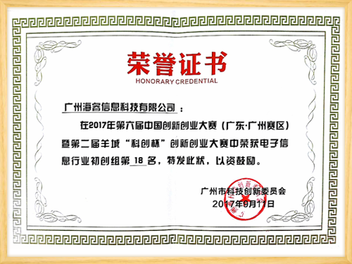 榮獲中國創新創業大賽廣州賽區優勝獎